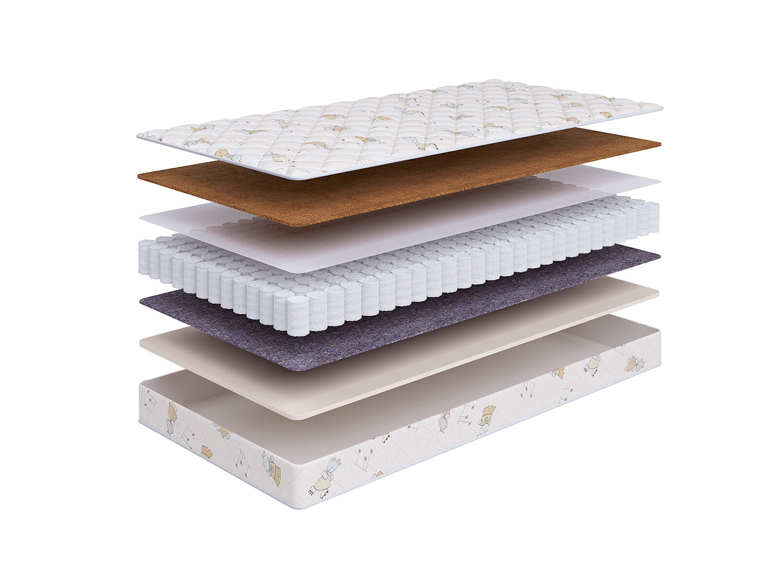 Кокосовая койра придает поверхности матраса жесткость, обладает превосходными ортопедическими и эксплуатационными свойствами.
