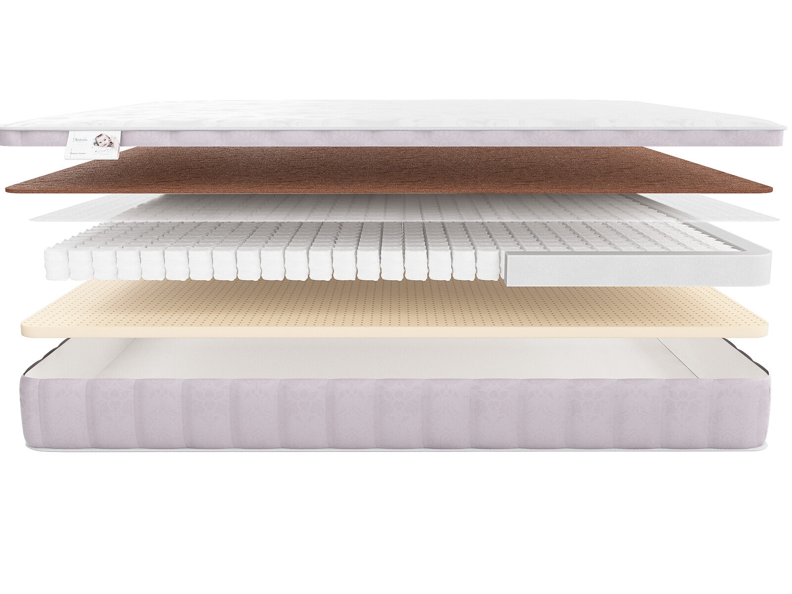 Внутри матрас представлен такими натуральными наполнителями как природные латекс и койра. Именно они обеспечивают различный комфорт каждой из сторон модели.