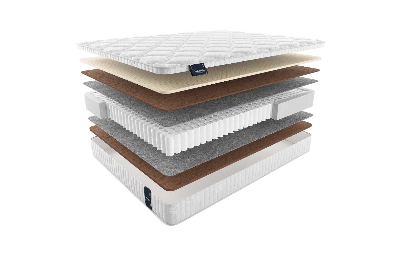 Периметр матраса укреплён коробом из пены высокой плотности, а пружинный блок разделён с наполнителями прослойкой термофиксированного фетра. Благодаря таким нюанса модель лучше переносит нагрузки и меньше изнашивается.