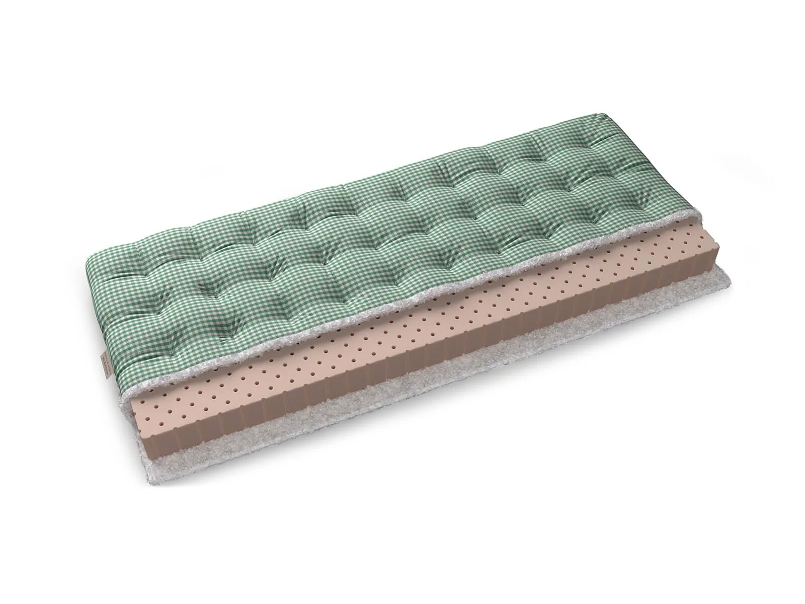 Самый популярный настил. Рулонный латекс отличный и долговечный, хорошо распределяет нагрузку, имеет ортопедический эффект. За счёт упругости латекса давление на сосуды и мышцы во время сна оказывается минимальным. Латекс – уникальный материал с точки зрения индустрии сна. Он прекрасно используется в качестве самостоятельной основы.