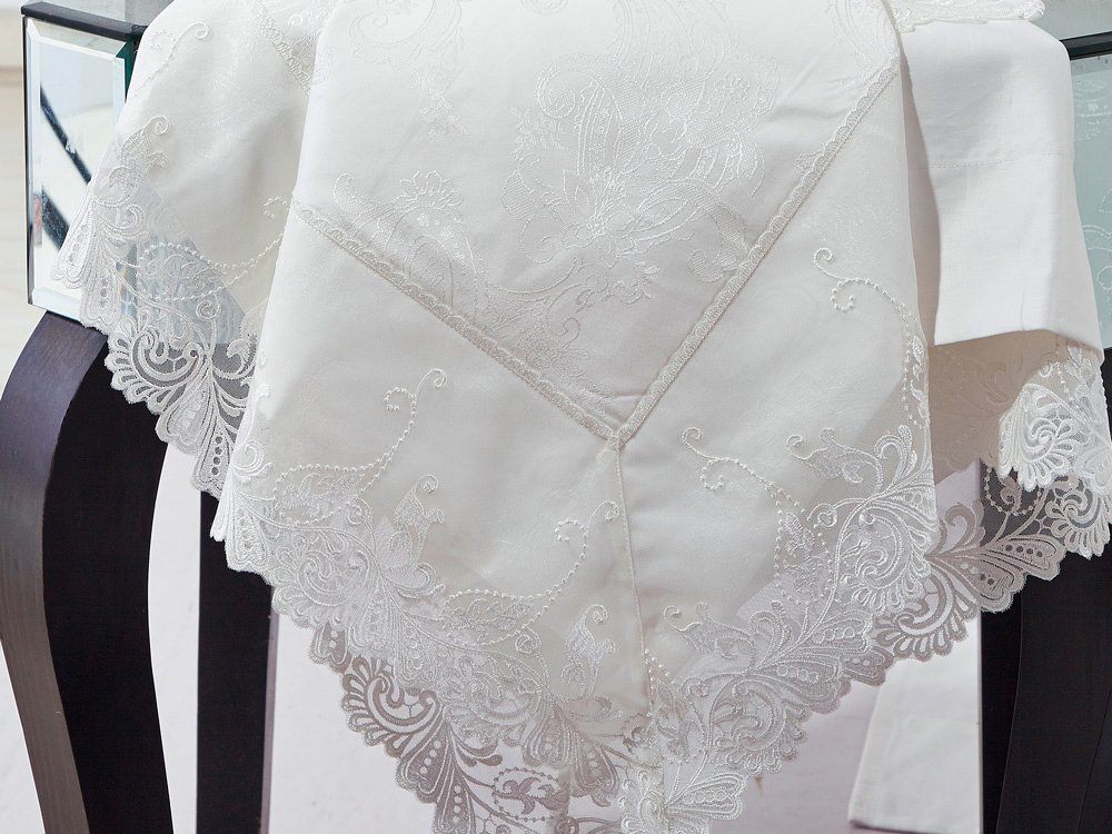 Изящные турецкие огурцы на молочном фоне нашли своё продолжение в нежном, воздушном кружеве, придающем комплекту необыкновенную нежность и великолепие!