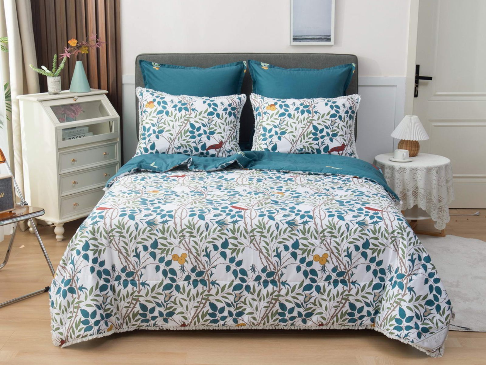 Набор с одеялом прослужит вам достаточно долго без потери своего качества, а рисунок не потускнеет даже после стирок. Комплект легко стирается в обычной машине и также легко гладится.