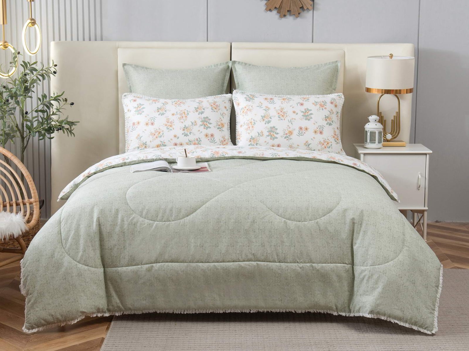 В комплекты комфортеров с одеялом Бернадетт входят наволочки, простыня и легкое всесезонное одеяло. Оцените это современное и очень удобное решение, которое идеально подходит тем, кто не любит возиться с пододеяльниками.