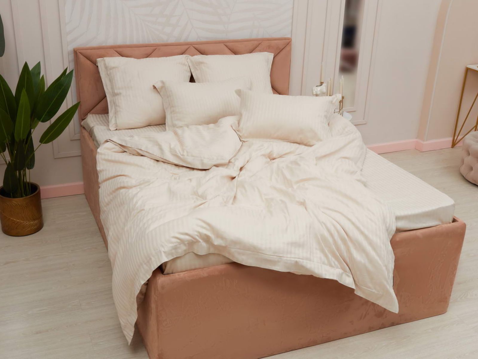 Постельное белье Моне, изготовленное из высококачественного страйп-сатина, станет украшением Вашей спальни. Комплекты представлены в 17 оттенках: от пастельных, до ярких насыщенных тонов. Такая палитра никого не оставит равнодушным. Особое плетение ткани образует узор в виде чередующихся полос, это придает постельному белью изысканность, гладкость и блеск.