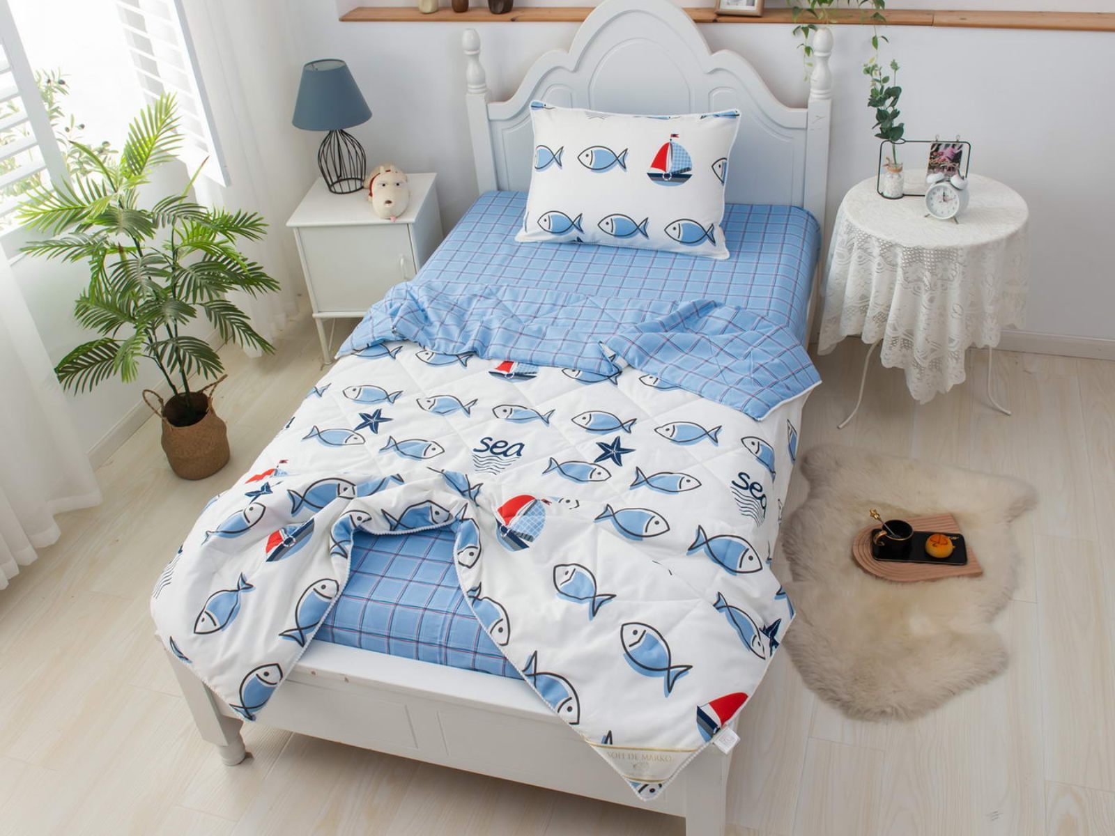Интернет-магазин СОН.РУ предлагает купить постельное белье с доставкой по Ульяновску . Комплект постельного белья Софи де Марко Морские рыбки с одеялом 1,5-спальный размера 1,5-спальный стоит 15 120 ₽ . На товар действует скидка в размере %. Если у вас есть вопросы по гарантии, доставке и оплате, задавайте их менеджерам нашего кол-центра по телефону: 8 800 333-65-91 .