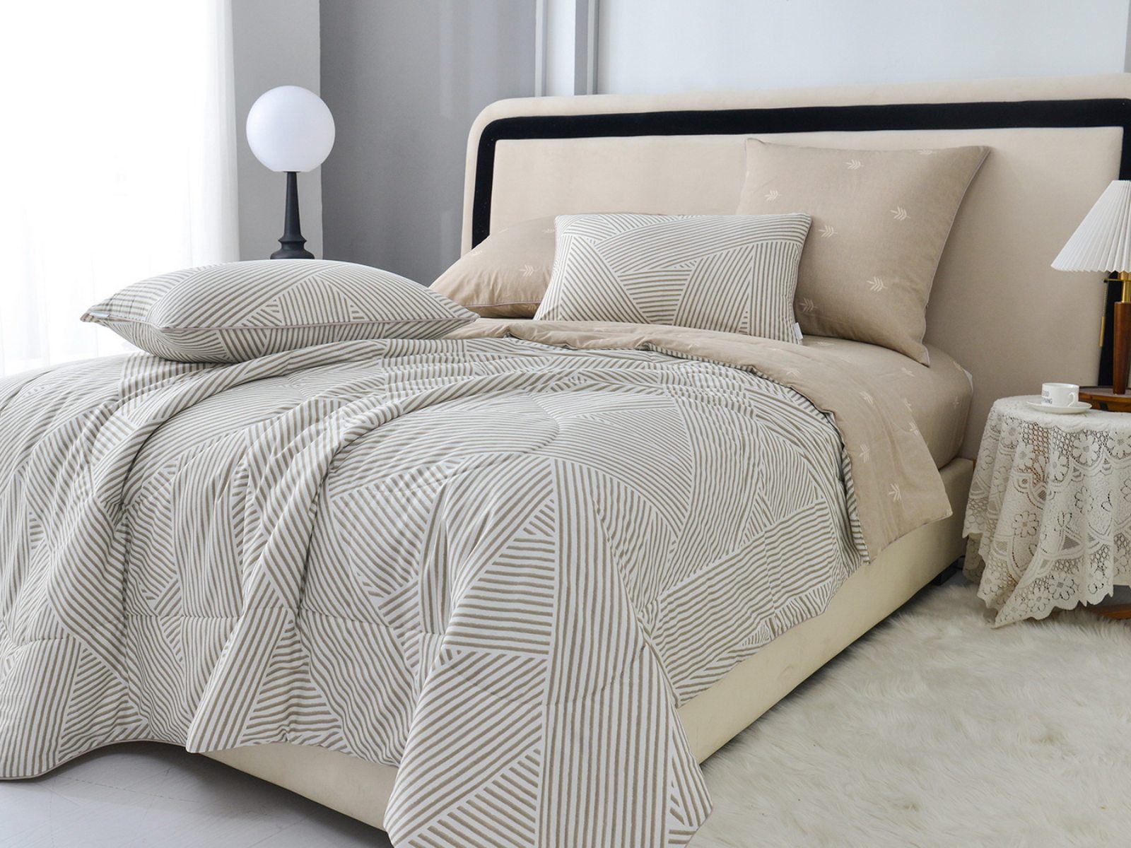 Особенность: двусторонняя модель, наволочки и одеяла декорированы кантом.