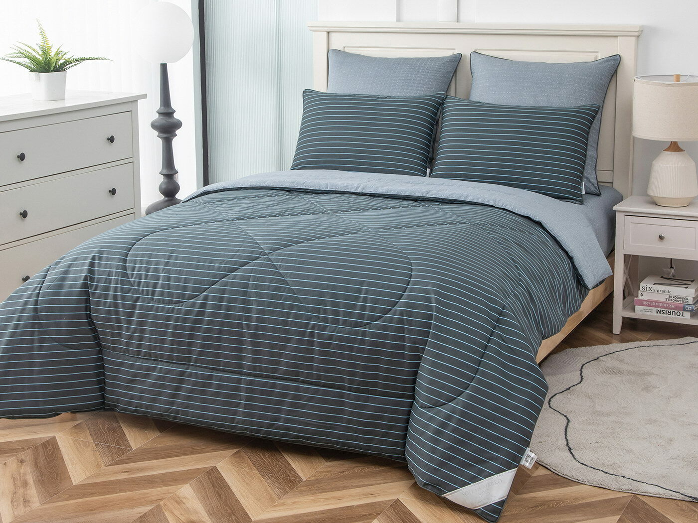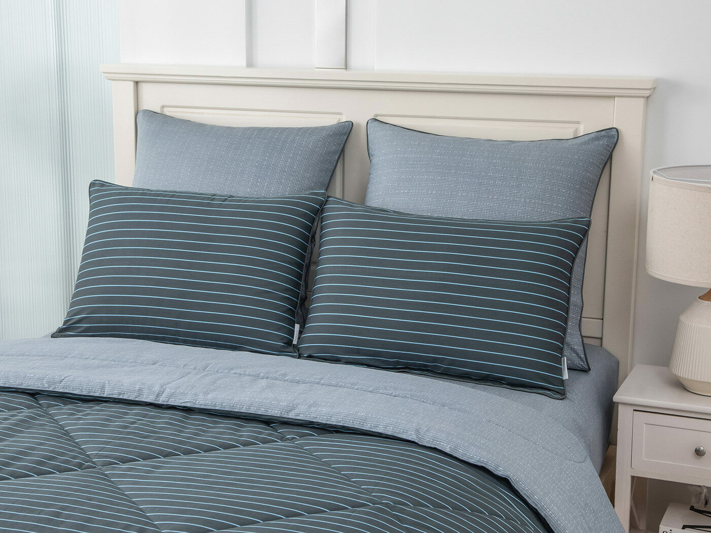 Особенность: двусторонняя модель, наволочки и одеяла декорированы кантом.