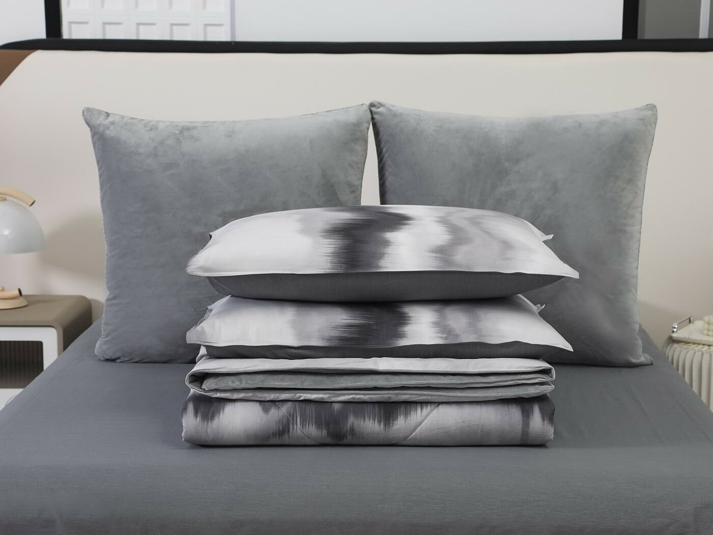 Новая коллекция комплектов «Роберто» с одеялом из однотонного велюра и принтованного сатина.