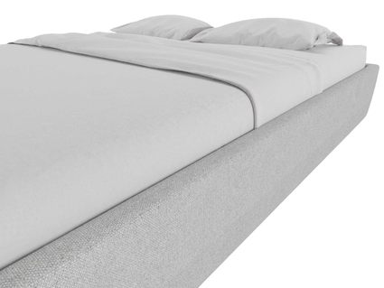В качестве обивки модели выступает рогожка. Производитель установил съёмные чехлы, которые расположились по периметру кровати: боковые части и изножье. Чехлы на каркасе легко отстегнуть для чистки и ухода, если в этом возникнет необходимость.