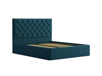 Мягкая кровать с обивкой из велюра.