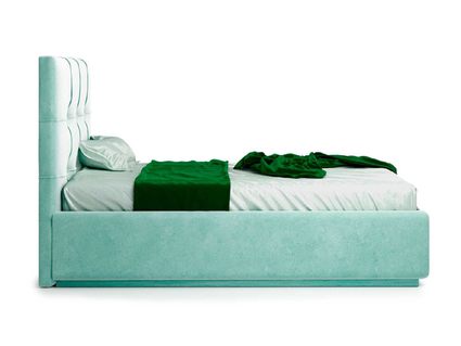 Кровать укомплектована IQ с подъемным механизмом и ящиком для белья без дна (дополнительная платная опция - дно к ящику IQ из HDF (ХДФ). Каркас кровати на цоколе, декоративный чехол на цоколе съёмный. Глубина ящика для белья - 30 см, без ограничения нагрузки на ящик.