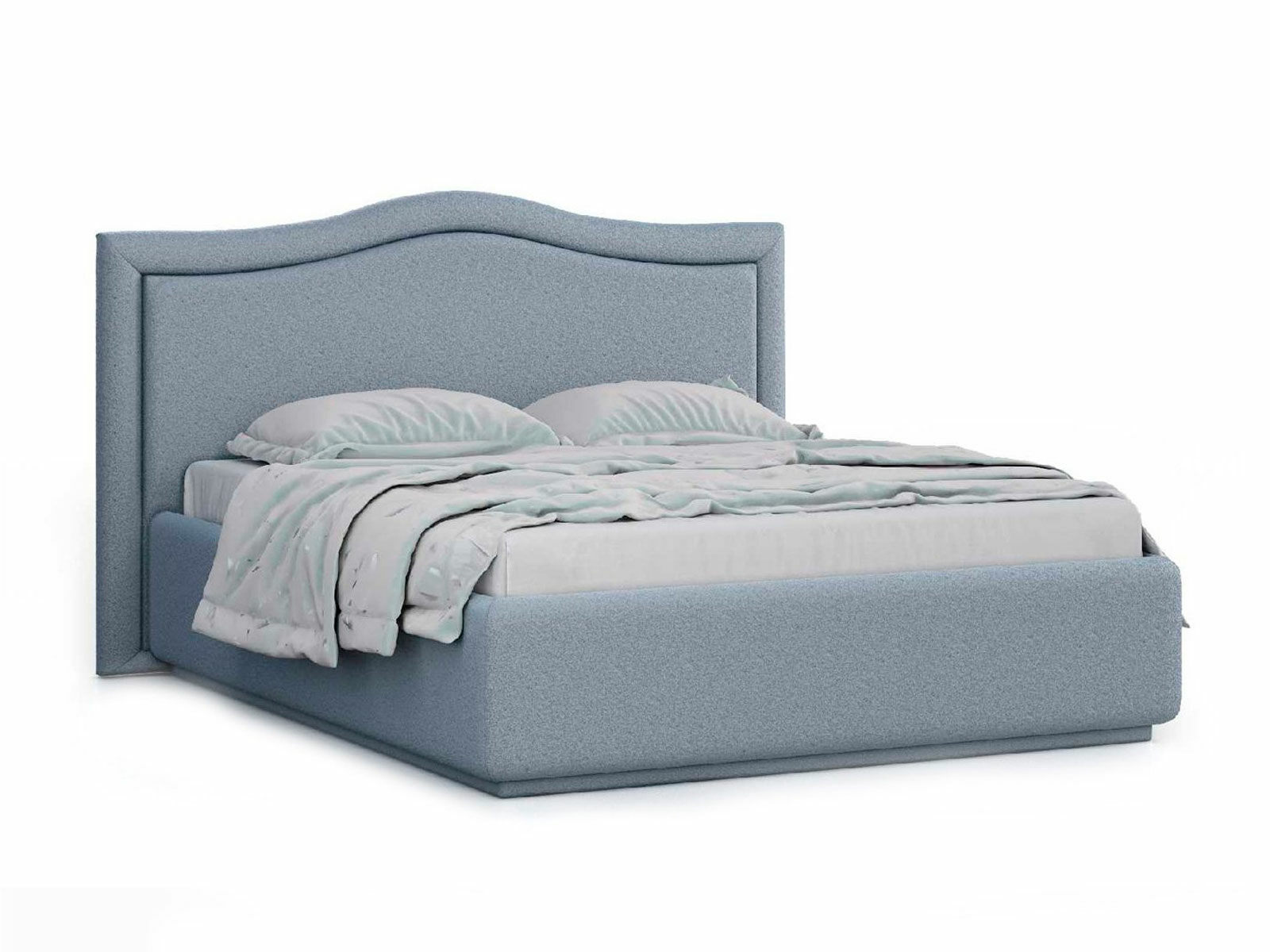 Кровать укомплектована IQ с подъемным механизмом и ящиком для белья без дна (дополнительная платная опция - дно к ящику IQ из HDF (ХДФ). Каркас кровати на цоколе, декоративный чехол на цоколе съёмный. Глубина ящика для белья - 30 см, без ограничения нагрузки на ящик.