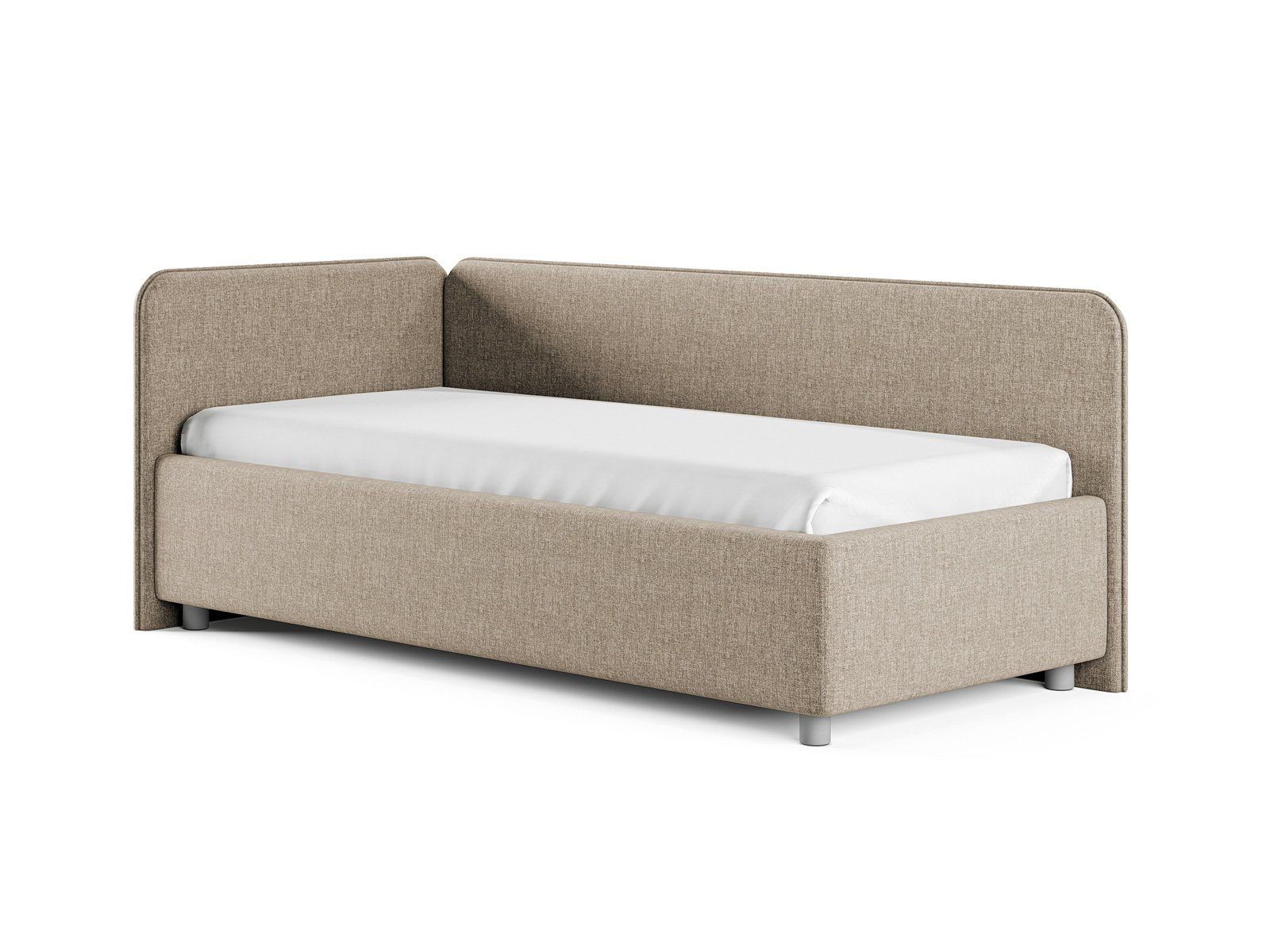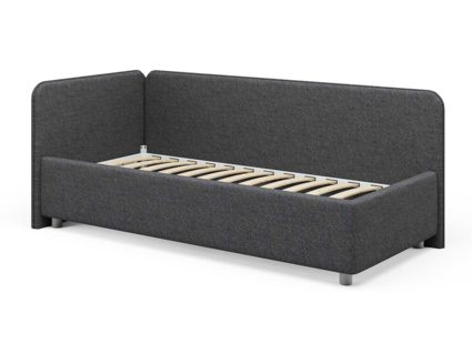 Односпальная кровать в современном стиле. Кровать-софа с одной боковой спинкой. Идеально подходит для квартир с небольшой площадью, детских и подростковых спален, гостевых комнат. Боковую спинку кровати можно изготовить на выбор на правую или левую сторону. Модель изготовлена из ДСП.