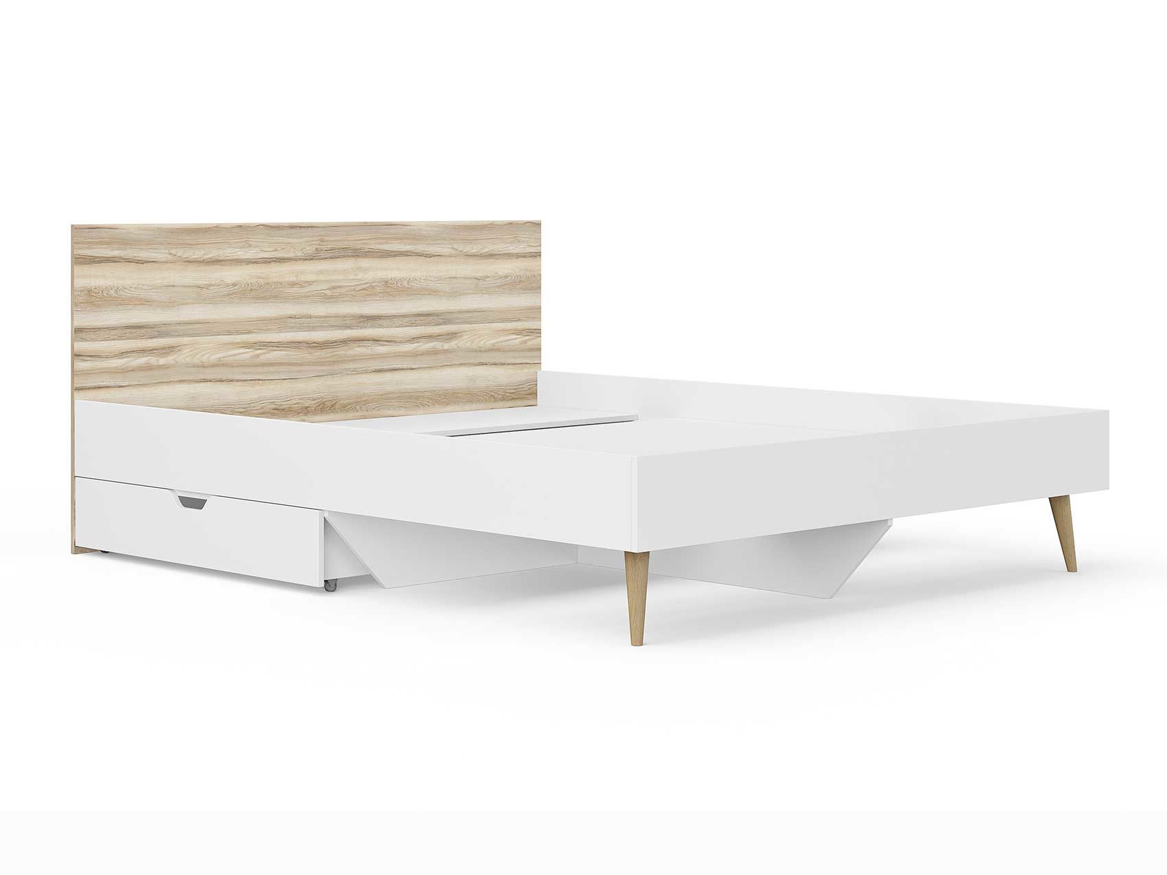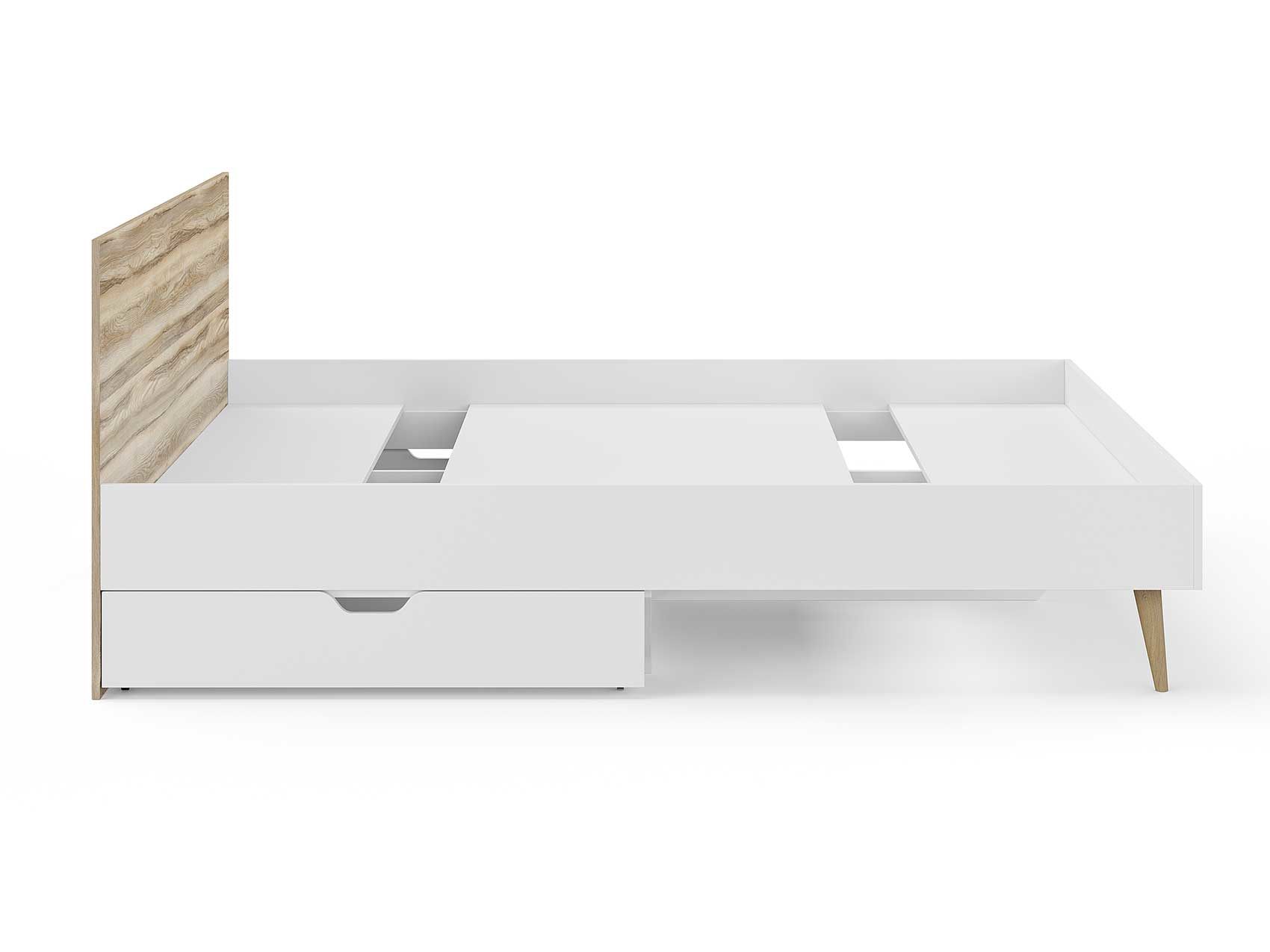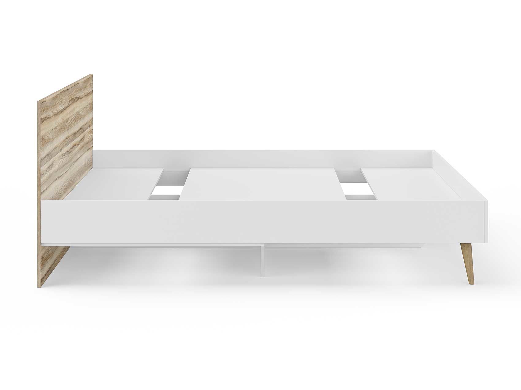 Кровать Ines оригинальное решение для спальни в скандинавском стиле. Благодаря деревянным ножкам кровать смотрится легкой и воздушной. В качестве основания используется настил из ЛДСП. Система усиленных средней и центральной царг позволяют выдерживать высокие нагрузки. Большое расстояние от пола до царги облегчает уборку под кроватью, делает доступной использование робота-пылесоса. Кровать можно укомплектовать ящиками для хранения вещей (приобретаются отдельно).
