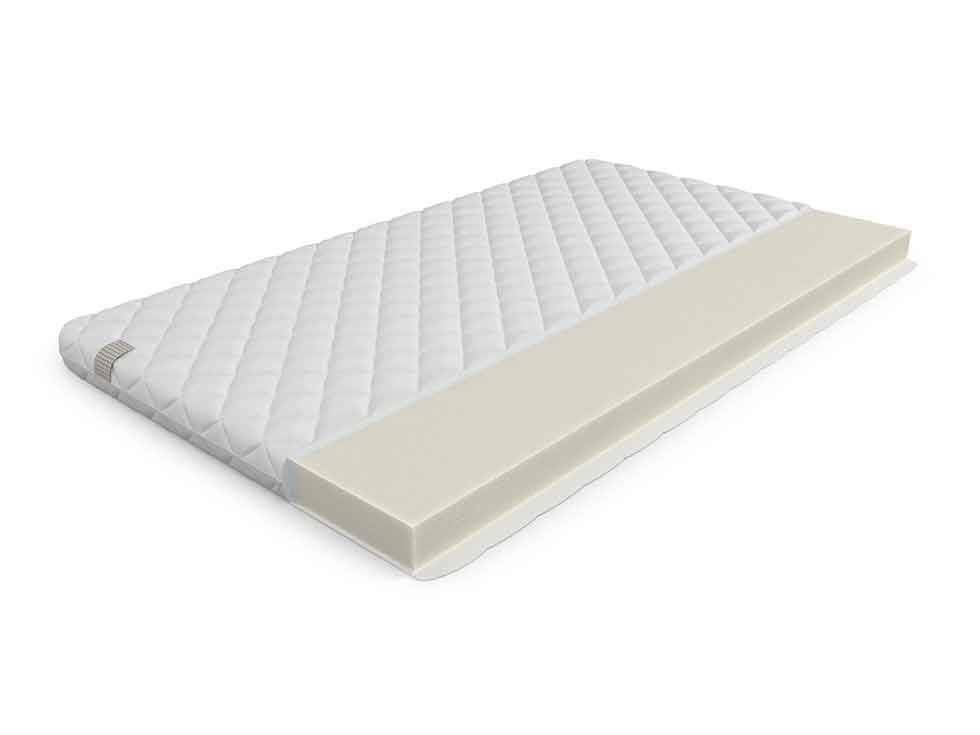 Это невысокий беспружинный матрас, из высокоплотного пенополиуретанового наполнителя, толщиной 10 см. Монолитный слой соответствует нормам и требованиям безопасности, имеет сертификат качества, и создаёт комфортабельную спальную поверхность даже при минимальной высоте.