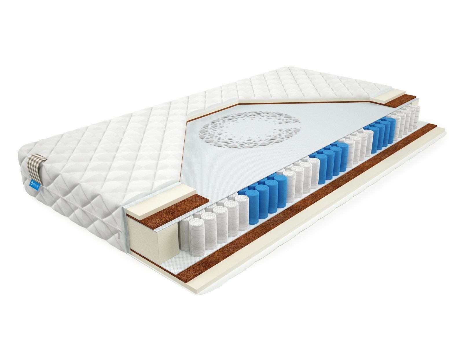 Матрас BioCrystal First - недорогой матрас средней жесткости. Матрас c ортопедическим эффектом на основе семи-зонного пружинного долговечного блока независимых пружин SIlverSpringPocket 7 zone. Данный блок насчитывает 580 металлических пружин на одно спальное место, это оптимальное количество пружин для бюджетного матраса. 7 зональный пружинный блок SSP 580 значительно прочнее обычного блока независимых пружин, и имеет большее количество витков, что, в свою очередь, лучше сказывается на упругости матраса и качестве сна. Матрас насчитывает семь зон жесткости и правильно повторяет изгибы позвоночника во время сна или отдыха. С каждой стороны матраса по 2 сантиметра пенополиуретана и 1 сантиметру латексированного кокосового волокна. Это оптимальный выбор для тех, кому важен комфортный сон и долговечность матраса.