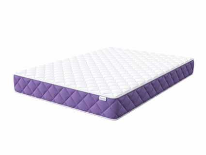 Чехол матраса получил яркий лиловый бурлет, выполненный из плотной высокопрочной рогожки. Дышащий жаккард на спальных поверхностях содержит натуральны хлопок, что позволяет матрасу свободно вентилироваться и отводить излишки тепла. На матрасе будет комфортно спать в любое время года.