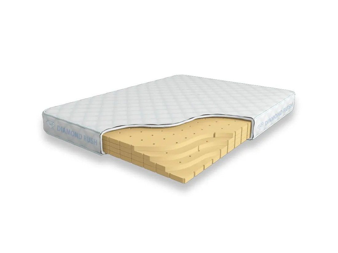 Матрас Diamond Rush Solid Latex 12 DR является беспружинным, т.е. не имеет в своей основе пружинного блока. В его состав входят слои листового натурального латекса с перфорацией. Это один из самых мягких материалов. Матрас, выполненный целиком из натурального латекса, обладает отличным анатомическим эффектом.