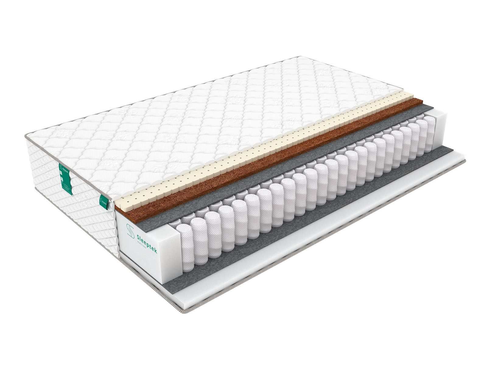 С одной стороны в качестве наполнителей использованы натуральный латекс и койра кокоса. Латекс перфорирован, что улучшает вентиляцию. Латекс придает этой стороне комфорт и мягкость, а койра усиливает ортопедические свойства пружинного блока. Оба наполнителя гигиеничны, не впитывают влагу и посторонние запахи, обладают долгим сроком службы.