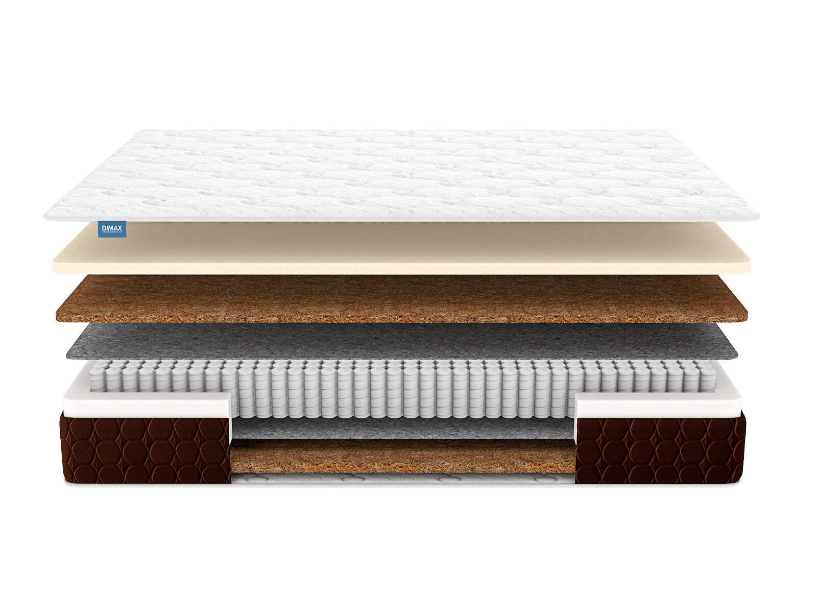 Димакс Мега Хард Медиум Плюс — матрас для тех, кто ищет эталонную поддержку позвоночника и мечтает о самом комфортном сне. Многоуровневая конструкция из усиленной кокосовой койры, искусственного латекса и блока S1000 создает «интеллектуальный каркас», который сочетает жесткость с адаптивностью, выдерживая до 150 кг нагрузки.