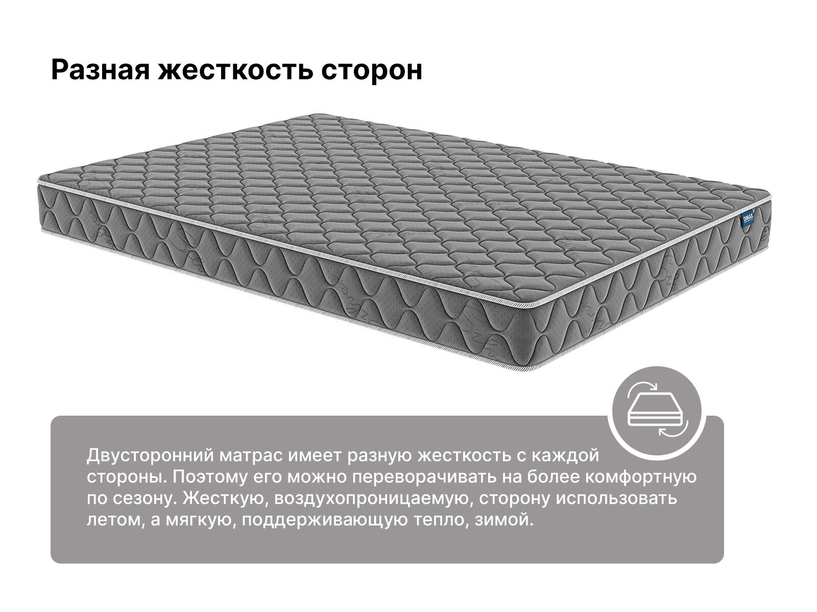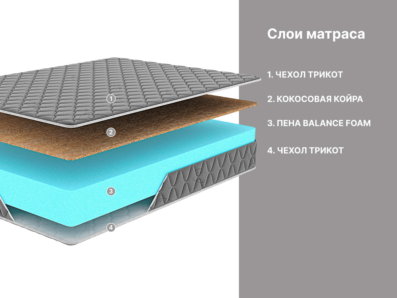 Для пошива чехла используется прочный трикот – надёжная ткань, которая не скатывается и не растягивается от частых нагрузок. Глубокий графитовый оттенок делает матрас менее марким.