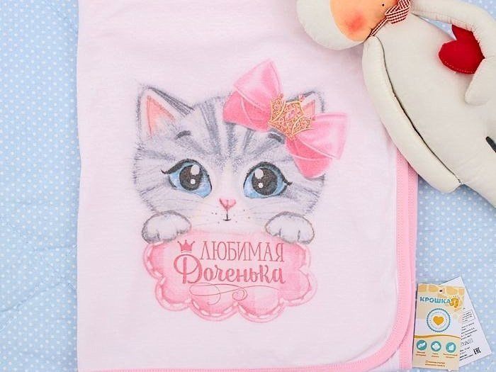 Детский двухслойный плед с ярким принтом из кулирки, подходит как для укрывания, так и для не тугого пеленания малыша.