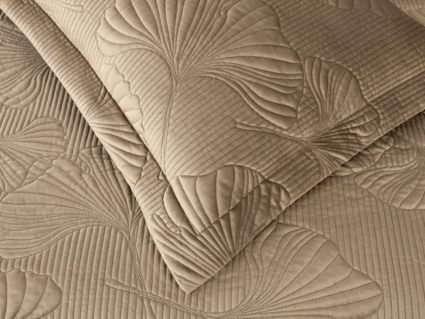 Роскошный растительный орнамент в виде вышивки добавит Вашей спальне элегантности и изысканности. Текстура цветочного узора будет сочетаться с другими элементами интерьера, такими как шторы, подушки, ковры и т.д.