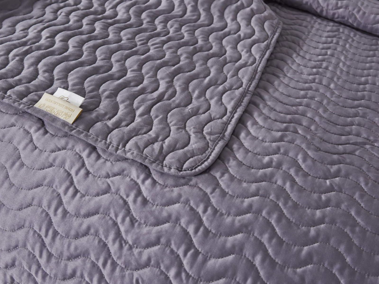 Коллекцию характеризуют сдержанные цвета с широкой палитрой сочетаний: серый, стоун, пудра, кофе, лаконичный волнистый узор, выступающий над поверхностью ткани, объёмная фактура, мягкость и гладкость атласного материала, деликатный кант по периметру изделия.