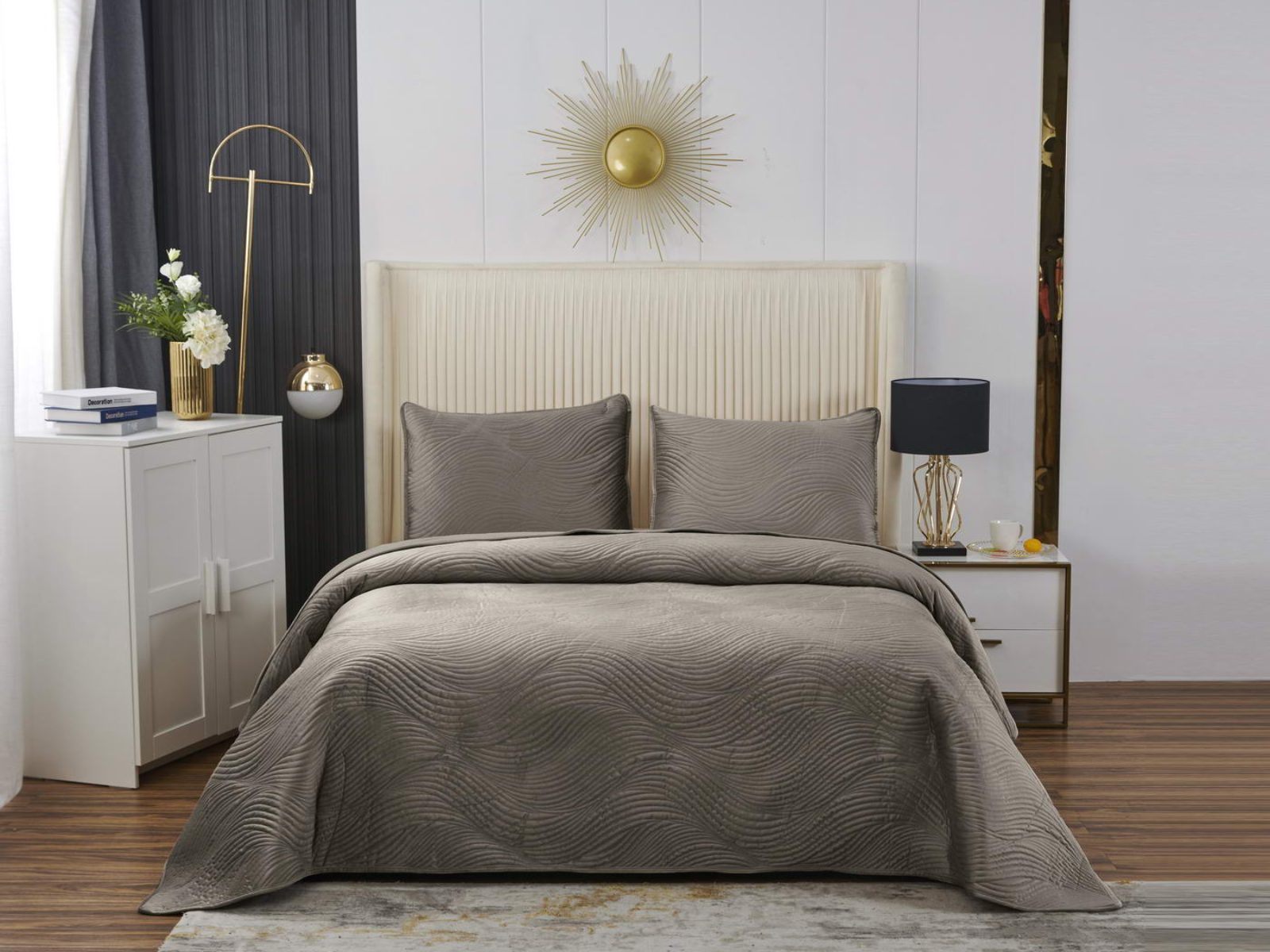 Традиционно в японском саду камней линии на песке символизируют отсутствие хаоса и спокойствие. Такой плавный узор напоминает размеренные потоки воды, которые оказывают на психику благоприятный эффект. Изящное покрывало Жизель с рисунком в виде подобных линий поможет обрести умиротворение, ведь в современном мире так важно уметь привести мысли в порядок. Помимо положительного воздействия на нервную систему, рисунок в виде волны придаст изысканности и утонченности Вашему интерьеру.
