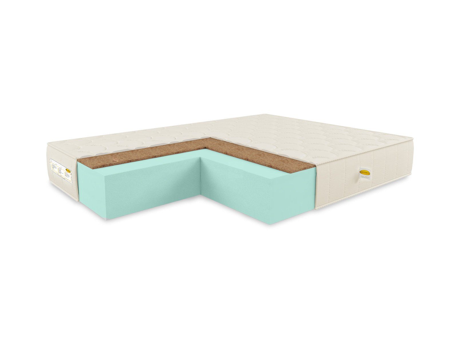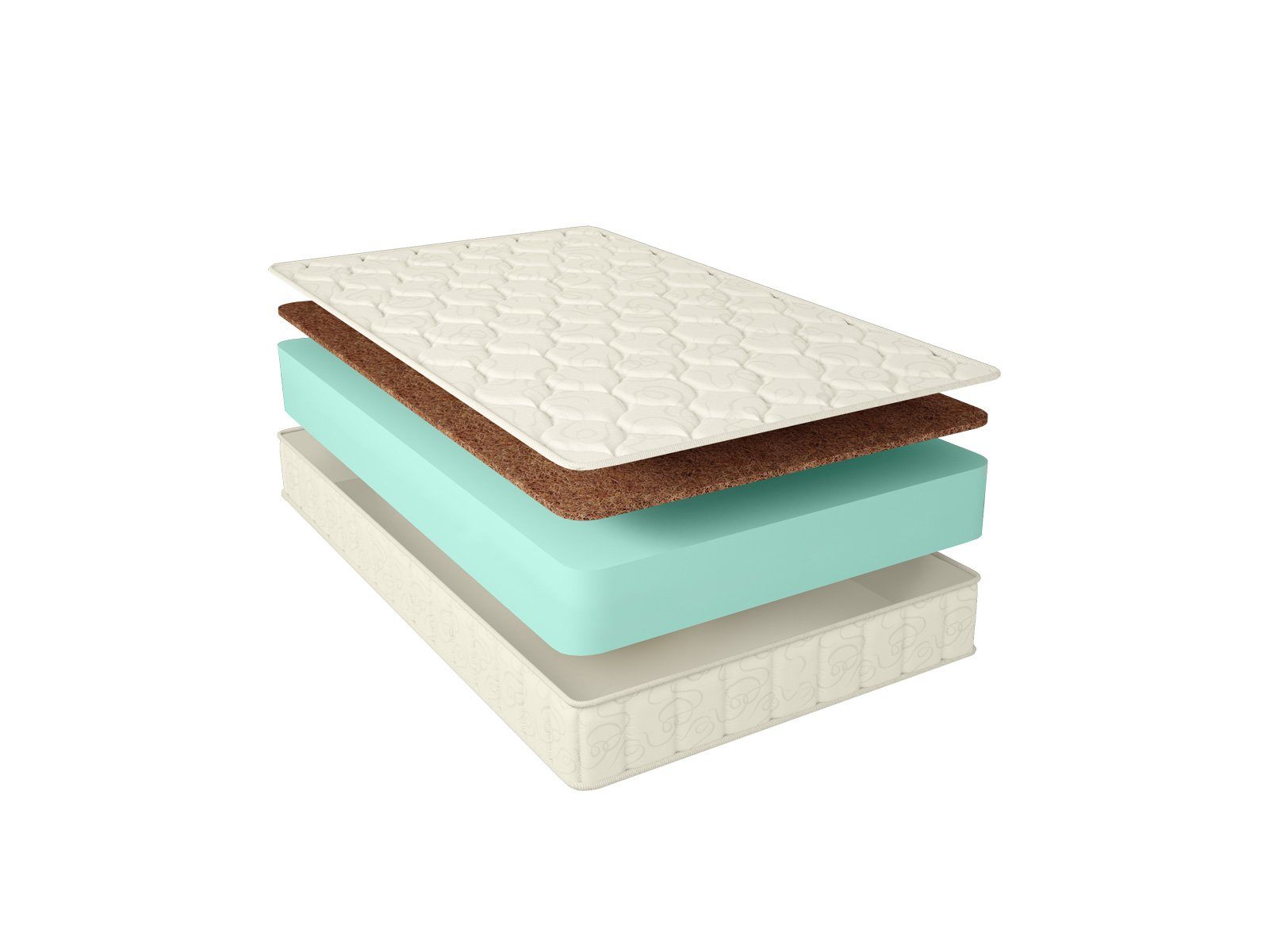 Модель полностью беспружина. В её состав включена пена – так называемый искусственный латекс и слой кокосовой койры. Если пену получают из ППУ и это полностью синтетический продукт нового поколения, то койра относится к природным материалам. Она формируется из волокон кокоса, которые прессуют в плиты и заливают латексным раствором для гибкости.