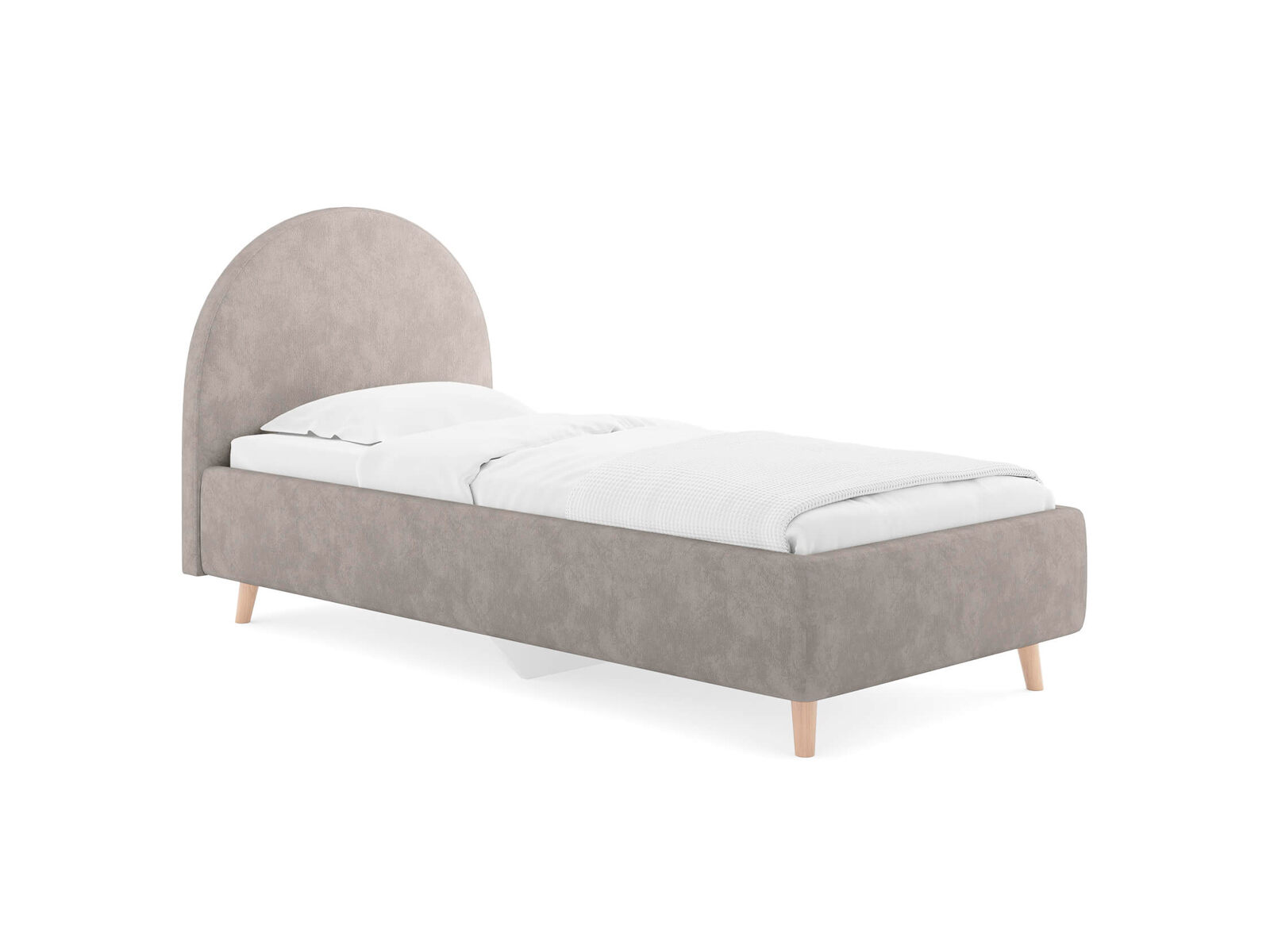 Подростковая кровать с закругленным изголовьем — это идеальное решение для создания уютного и стильного пространства в комнате. Элегантные линии изголовья не только придают изделию изысканный вид, но и добавят мягкость в интерьер, создавая уютную обстановку. По умолчанию задняя спинка кровати обивается тканью, что позволит расположить кровать не только к стене. Основание кровати на высоких деревянных ножках. Благодаря увеличенной высоте позволяют осуществлять легкую уборку под кроватью, даже с помощью робота-пылесоса. При необходимости кровать может быть укомплектована трансформируемым основанием Aquarius.