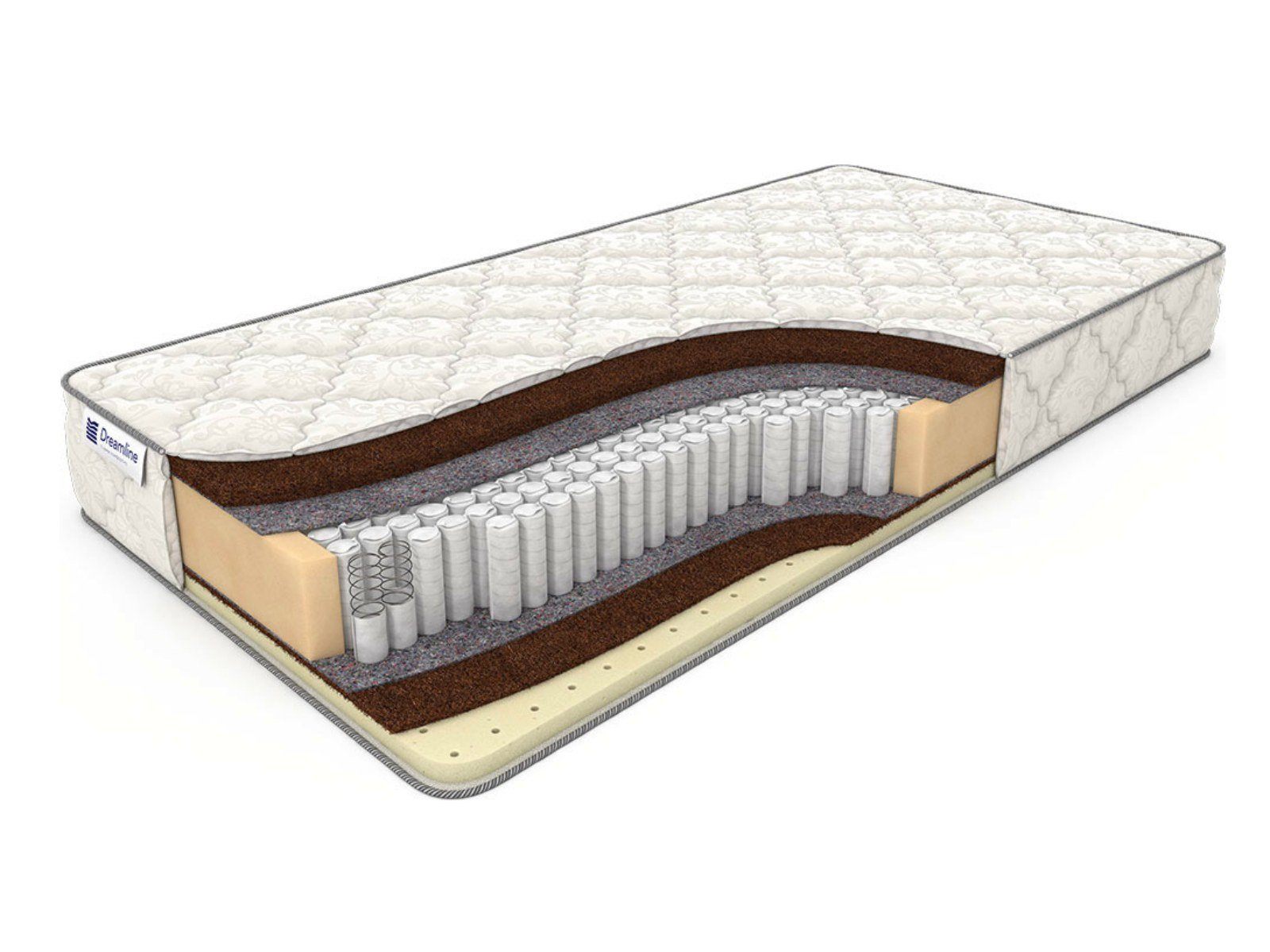 Матрас SleepDream Hard S1000, высота которого 22 см, выдерживает достаточно высокие нагрузки - до 140 кг на спальное место. Один из плюсов данной модели в том, что есть возможность выбрать наиболее удобную сторону для сна с учетом своих предпочтений, так как они имеют разную жесткость. Одна из сторон жесткая за счет толстого слоя кокосовой койры. В другой сочетаются койра и натуральный латекс - эта сторона имеет среднюю жесткость. Матрас изготовлен на основе прочного современного пружинного блока (500 пружин на квадратный метр) с отличными ортопедическими свойствами. Чехол модели SleepDream Hard S1000 сшит из хлопкового жаккарда, простеган и наполнен объемным антиаллергенным холконом. В него по заказу можно бесплатно вшить смотровую молнию.