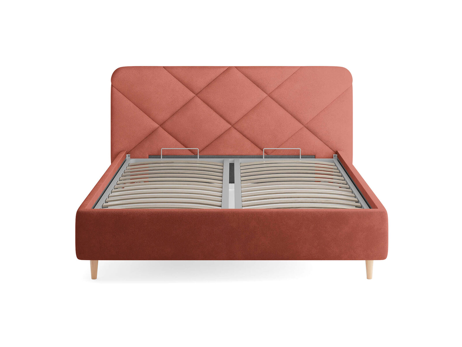Основание кровати на деревянных ножках. Благодаря увеличенной высоте позволяют осуществлять легкую уборку под кроватью, даже с помощью робота-пылесоса.