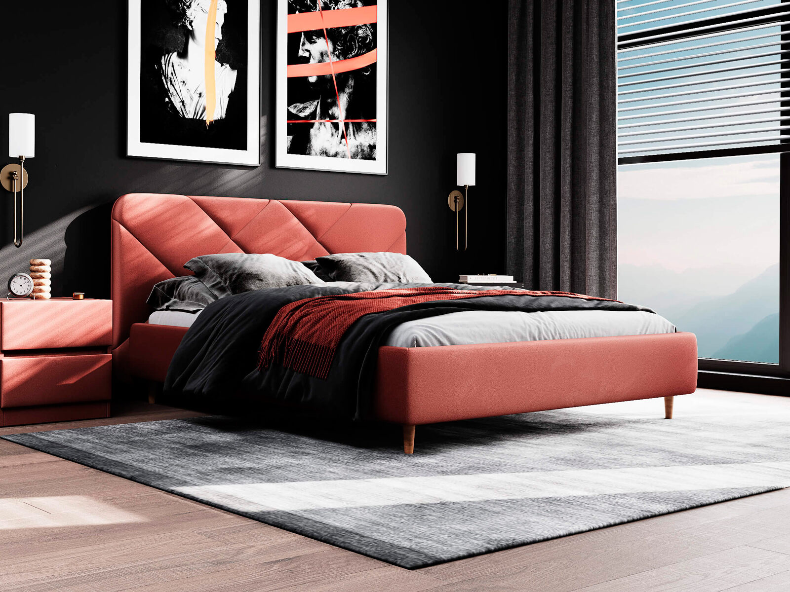 Кровать Taylor выглядит эффектно благодаря изголовью со стежкой в виде крупного абстрактного рисунка. Закругленные углы, объем и мягкость изголовья создадут в вашей спальне атмосферу релакса и уюта. Благодаря высоким опорам из натурального дерева, модель будет смотреться актуально в интерьерах в скандинавском и современном стиле.